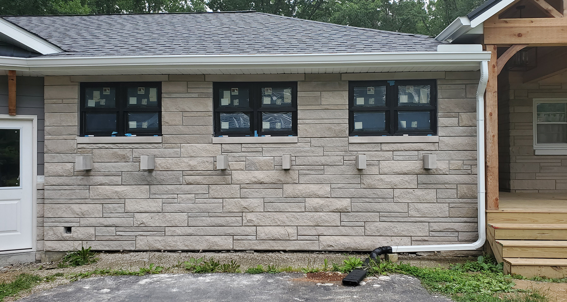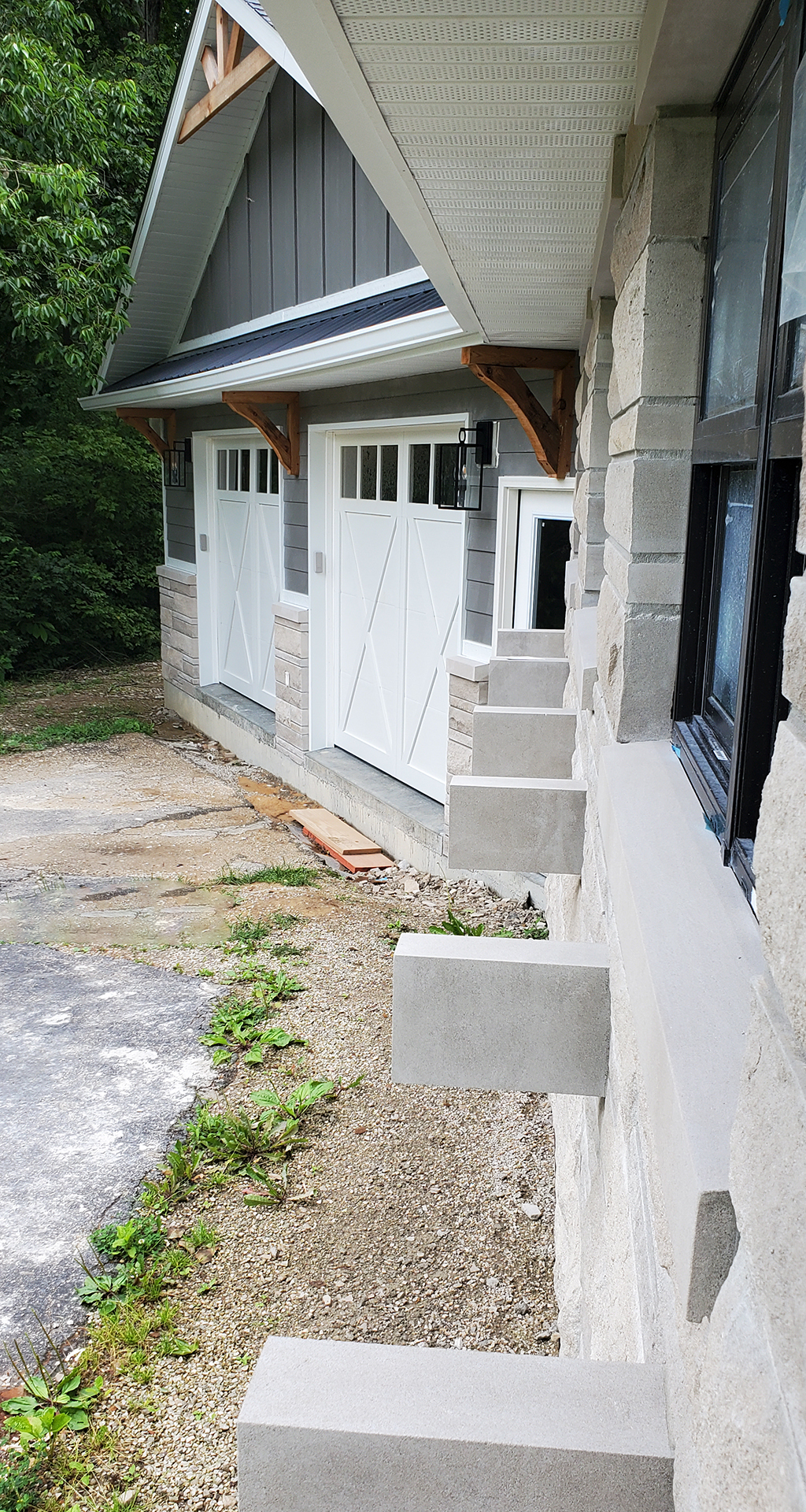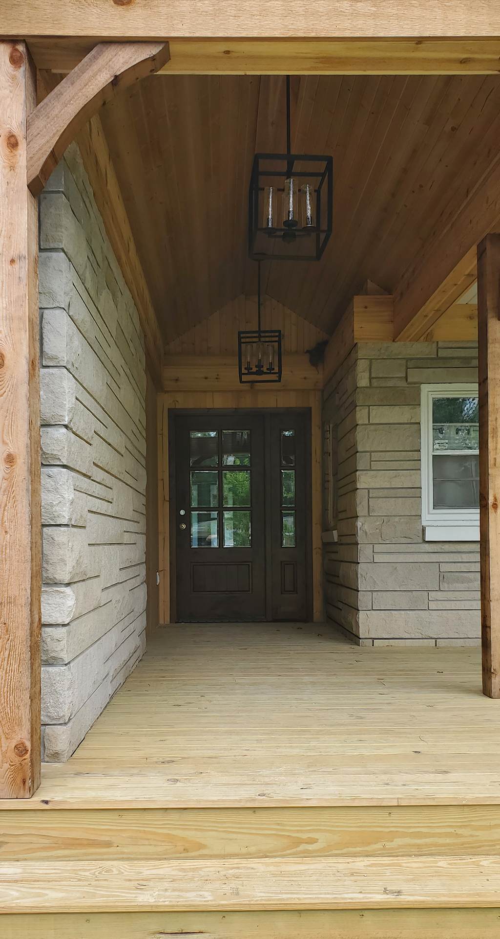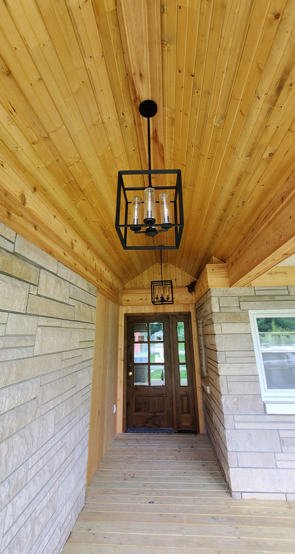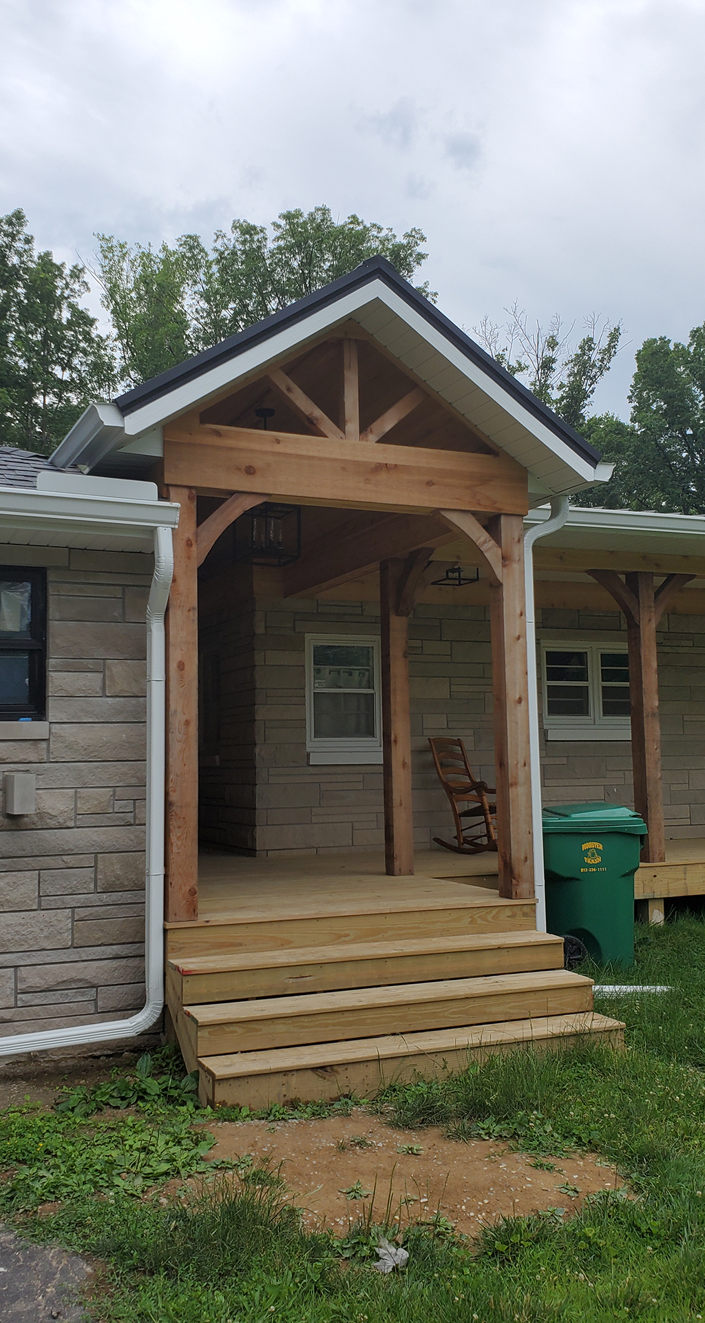 We love 1950's ranch style houses and appreciate any time we get to add a little something to one. This is a beautiful limestone ranch house built in the early 1950's. We took the existing garage and turned that into living space. We moved the kitchen into the old garage and opened up the ceilings in the new space and the old. A two car garage was angled off the side and a front porch was added. Wood accents, beams and carsiding were used to make the ranch feel more like a country retreat.