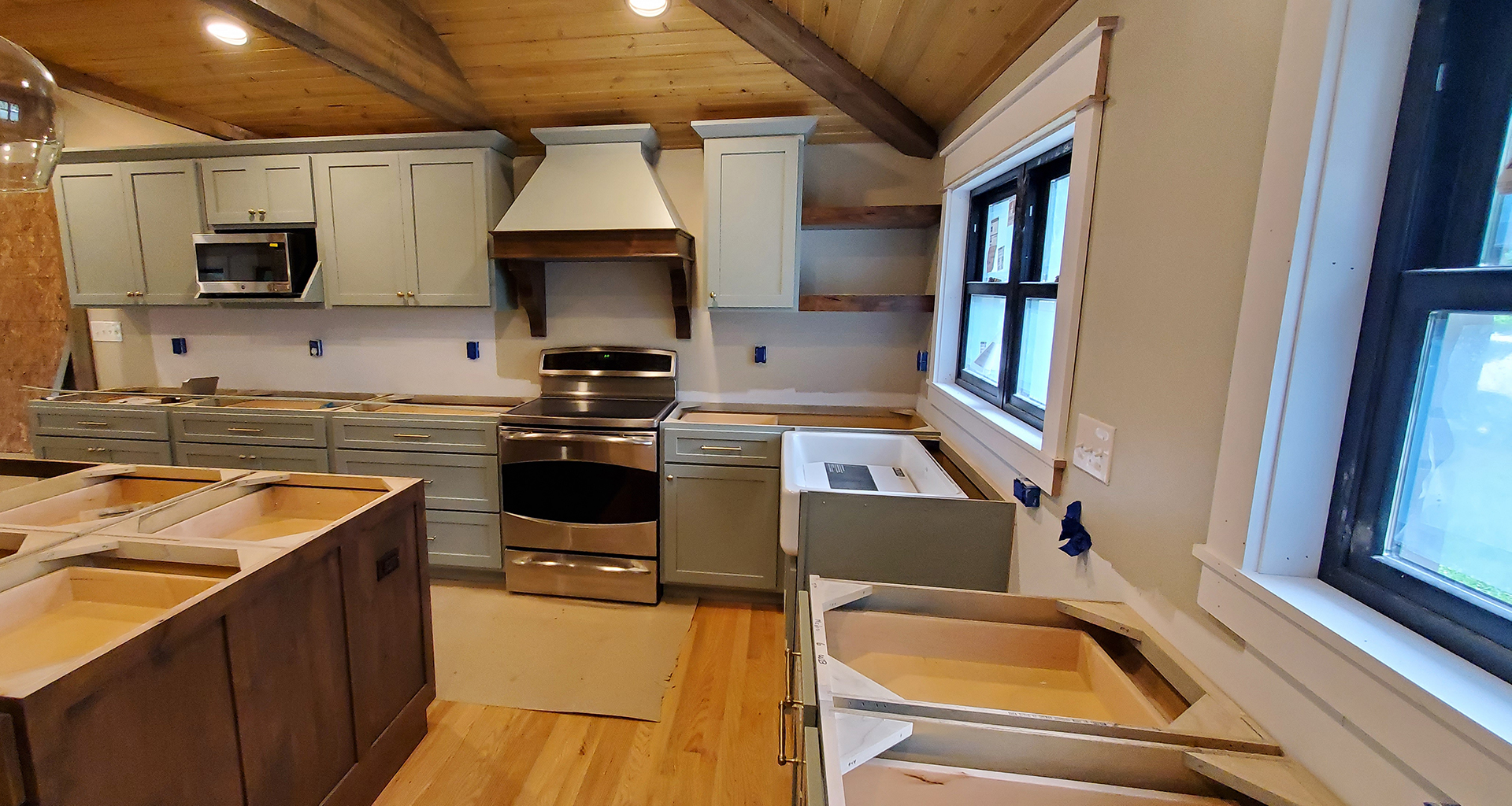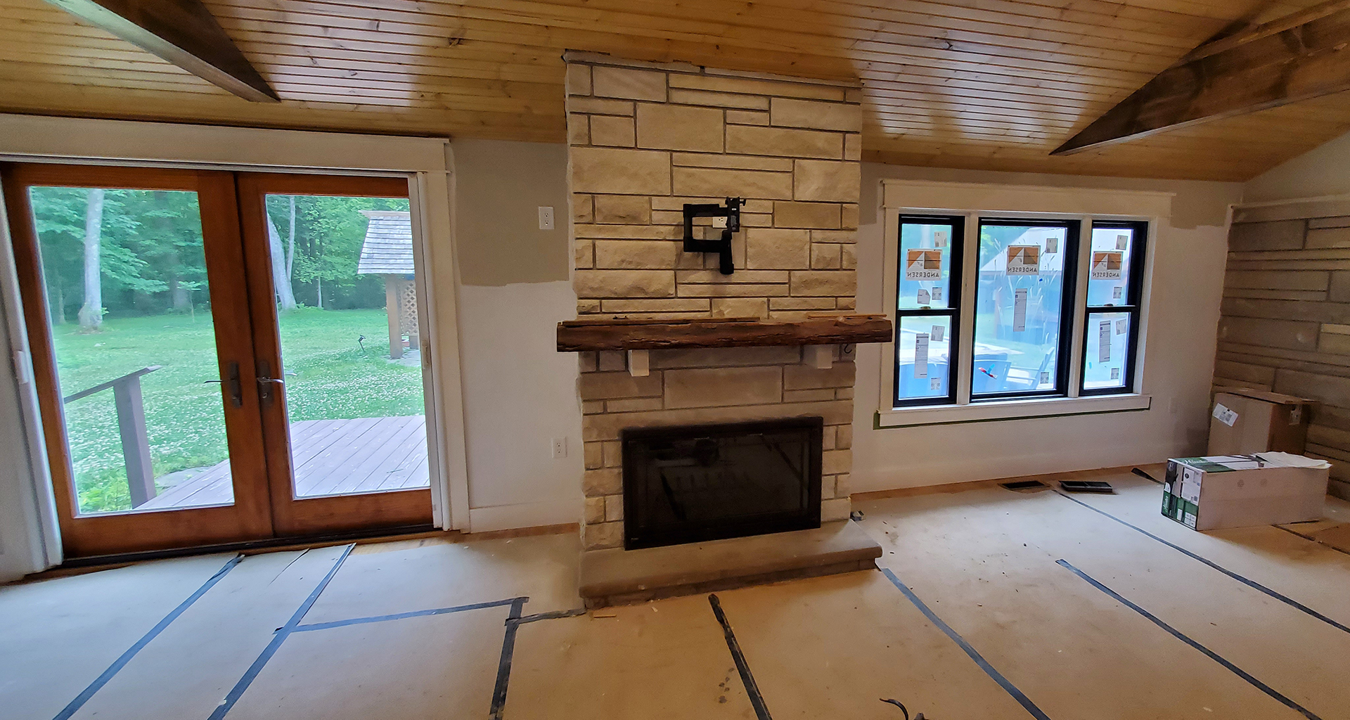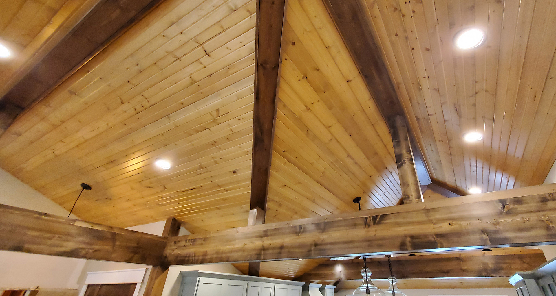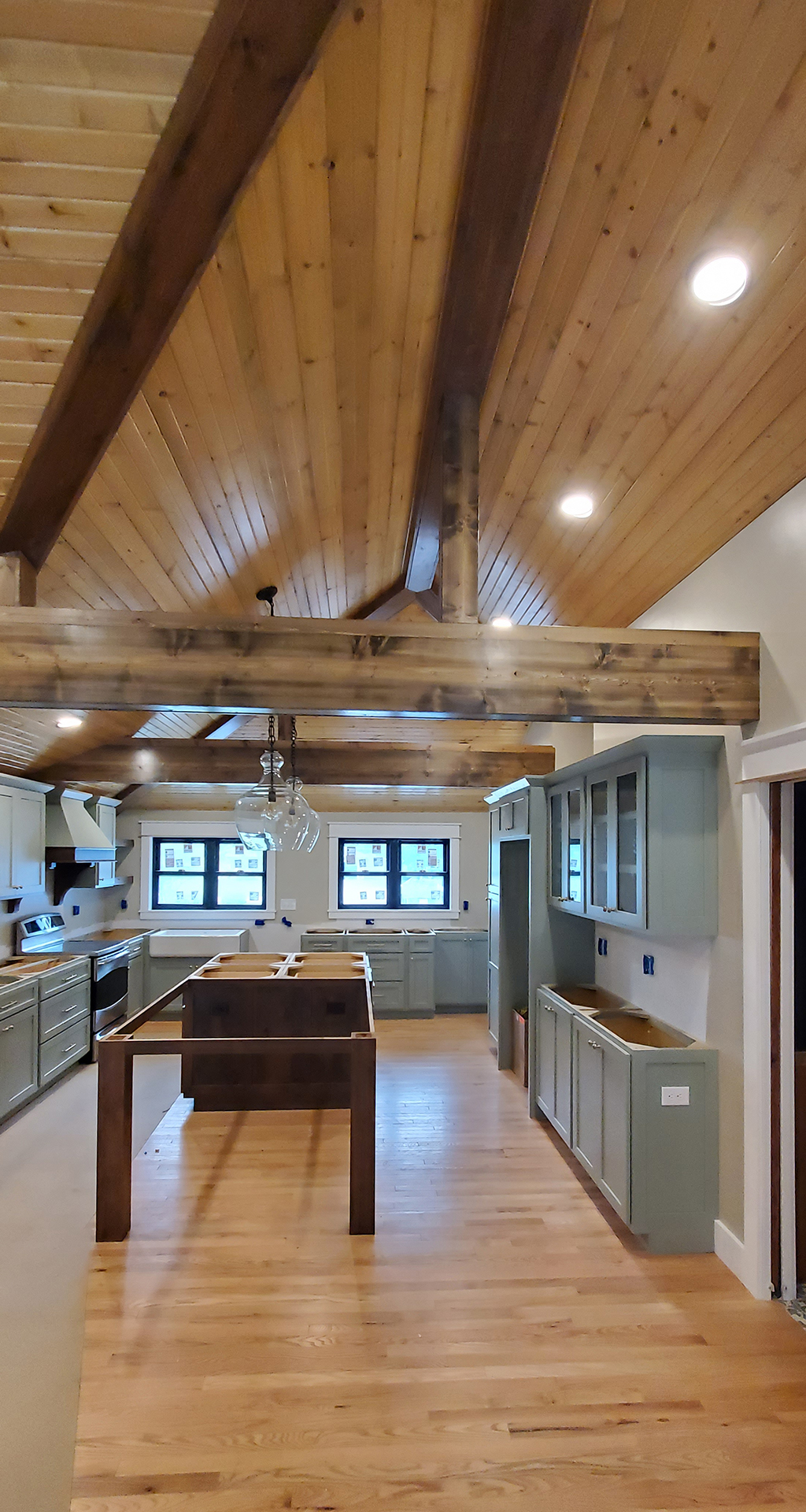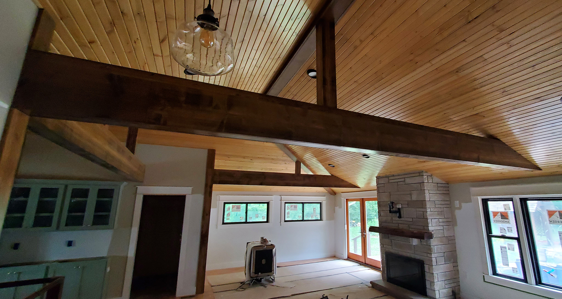 We love 1950's ranch style houses and appreciate any time we get to add a little something to one. This is a beautiful limestone ranch house built in the early 1950's. We took the existing garage and turned that into living space. We moved the kitchen into the old garage and opened up the ceilings in the new space and the old. A two car garage was angled off the side and a front porch was added. Wood accents, beams and carsiding were used to make the ranch feel more like a country retreat.