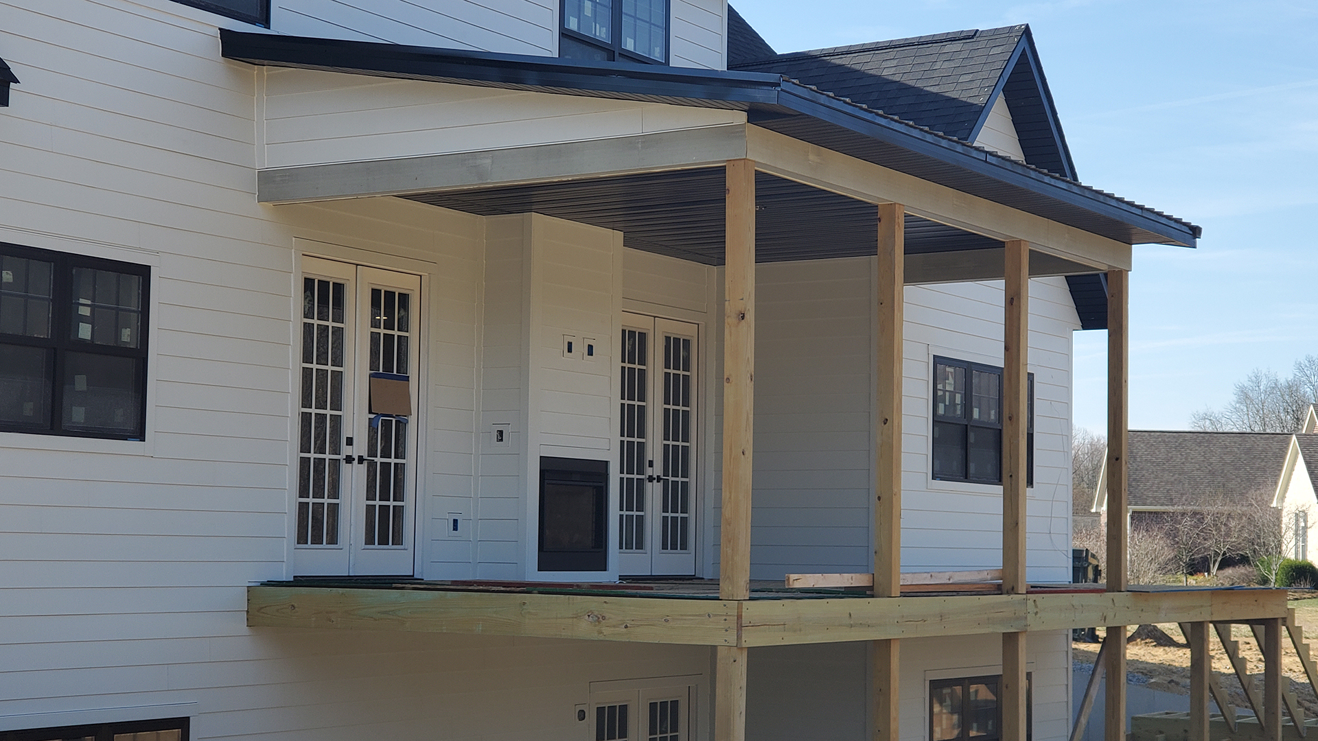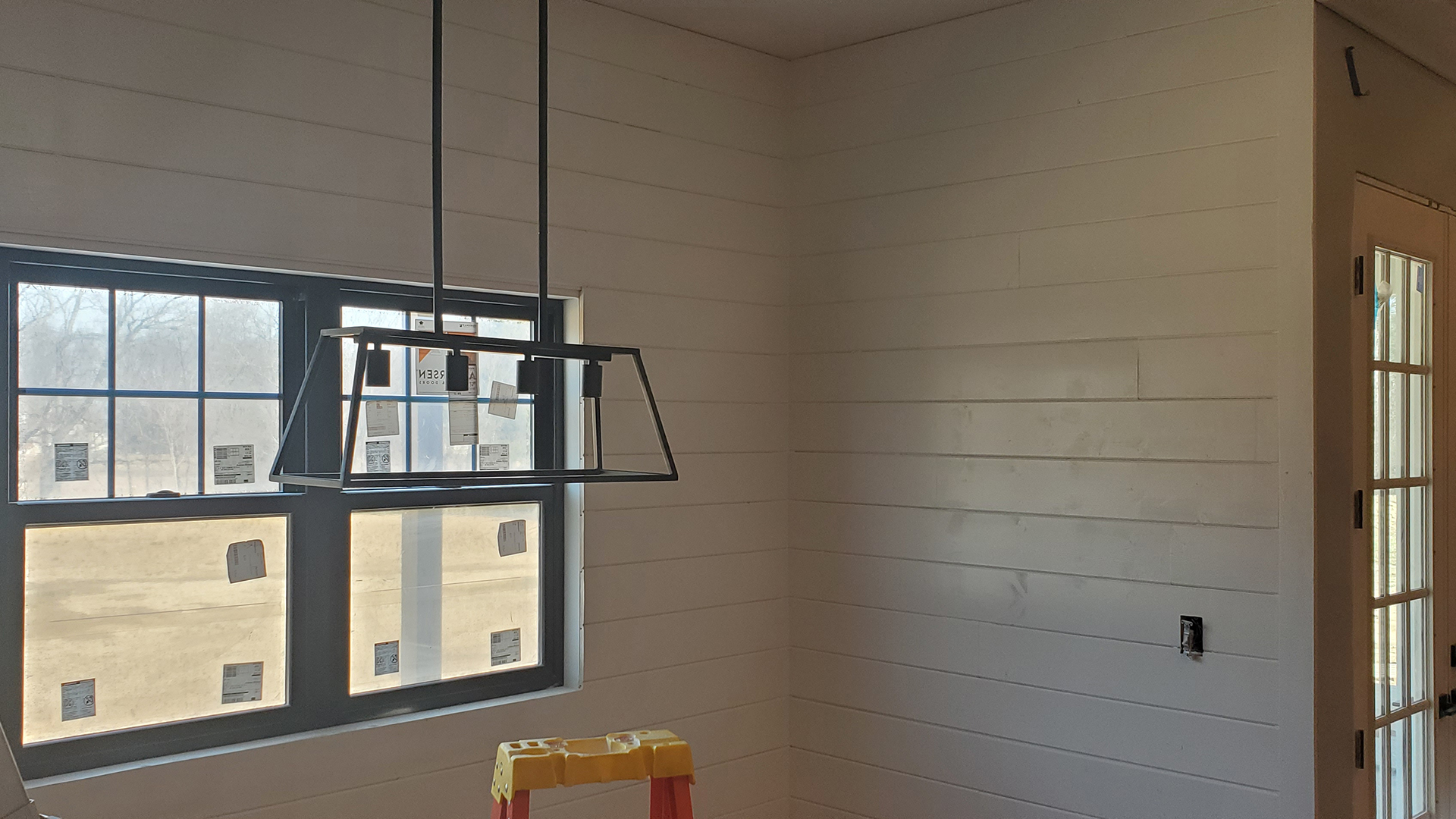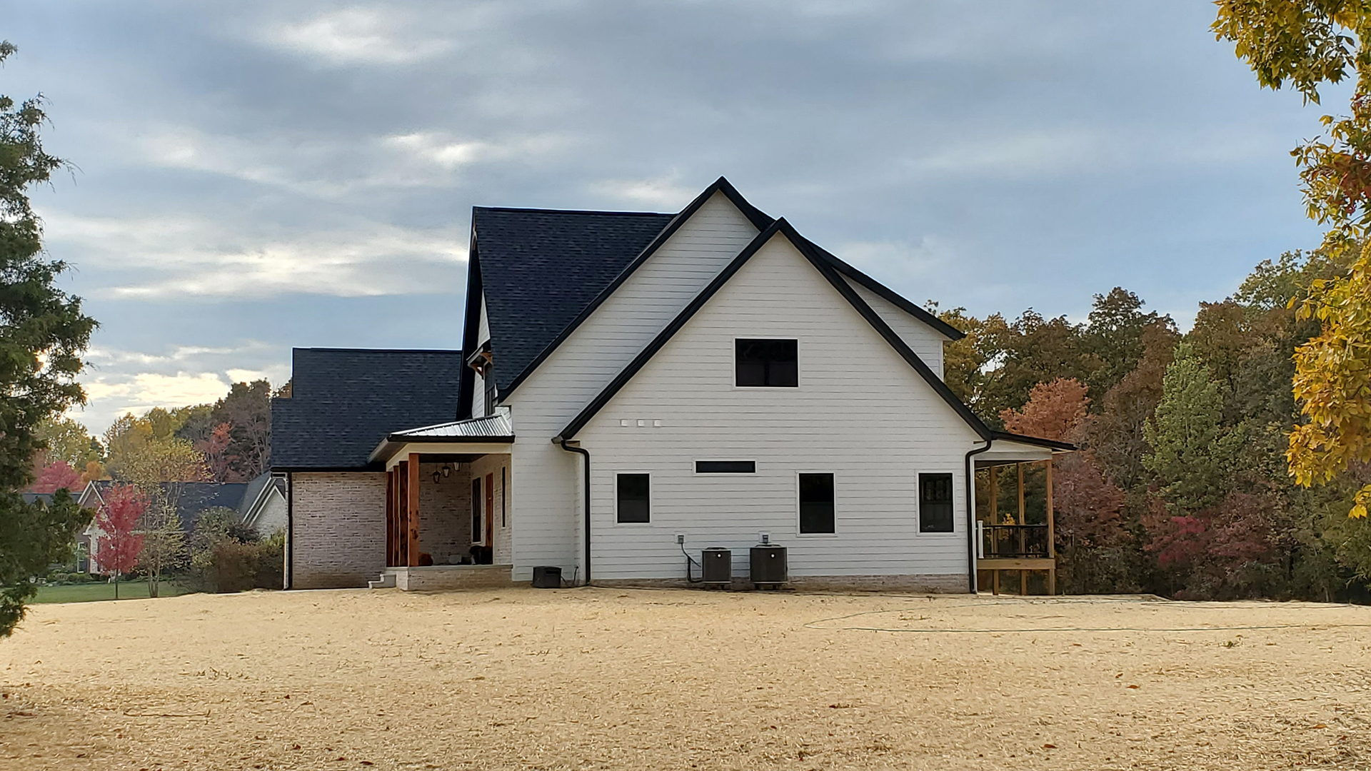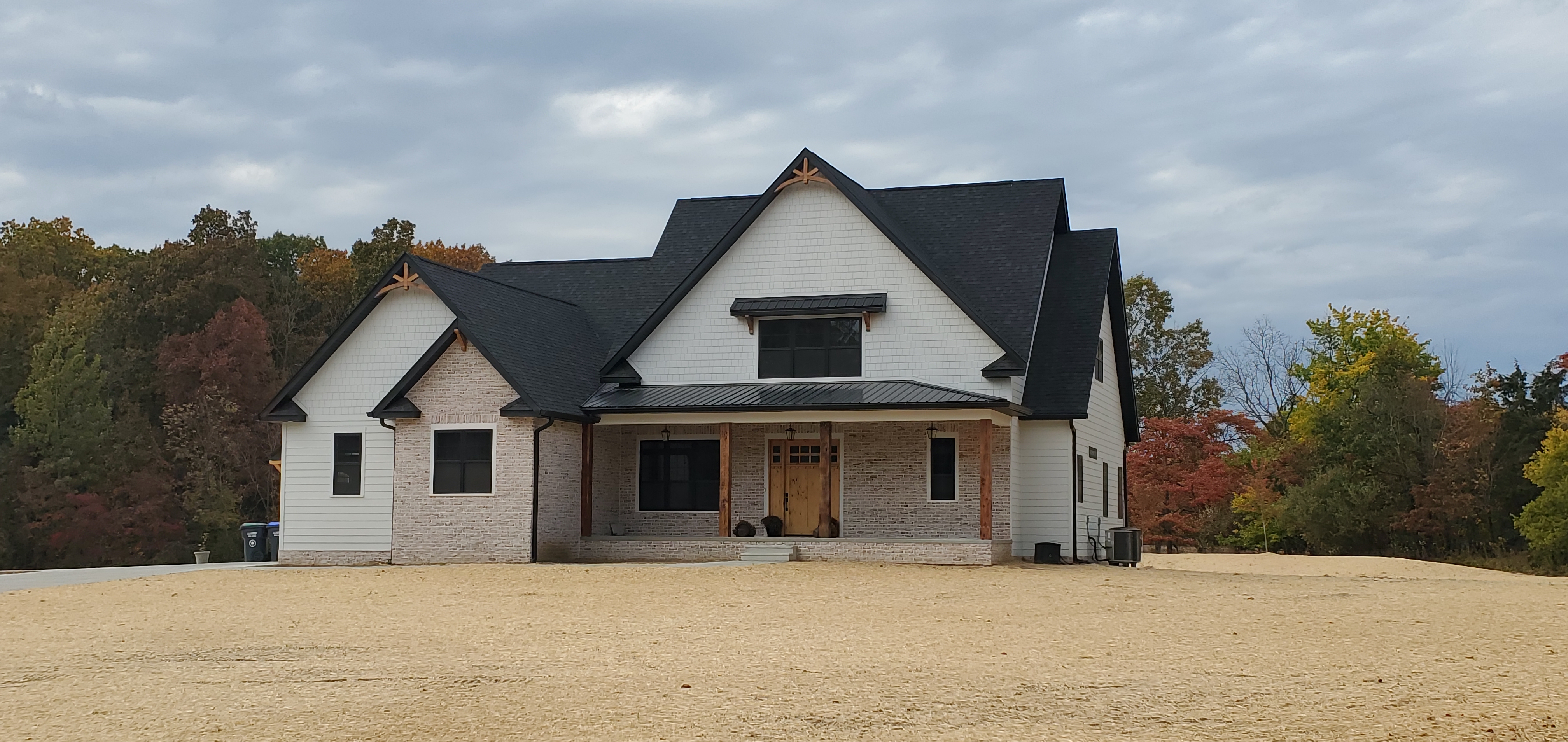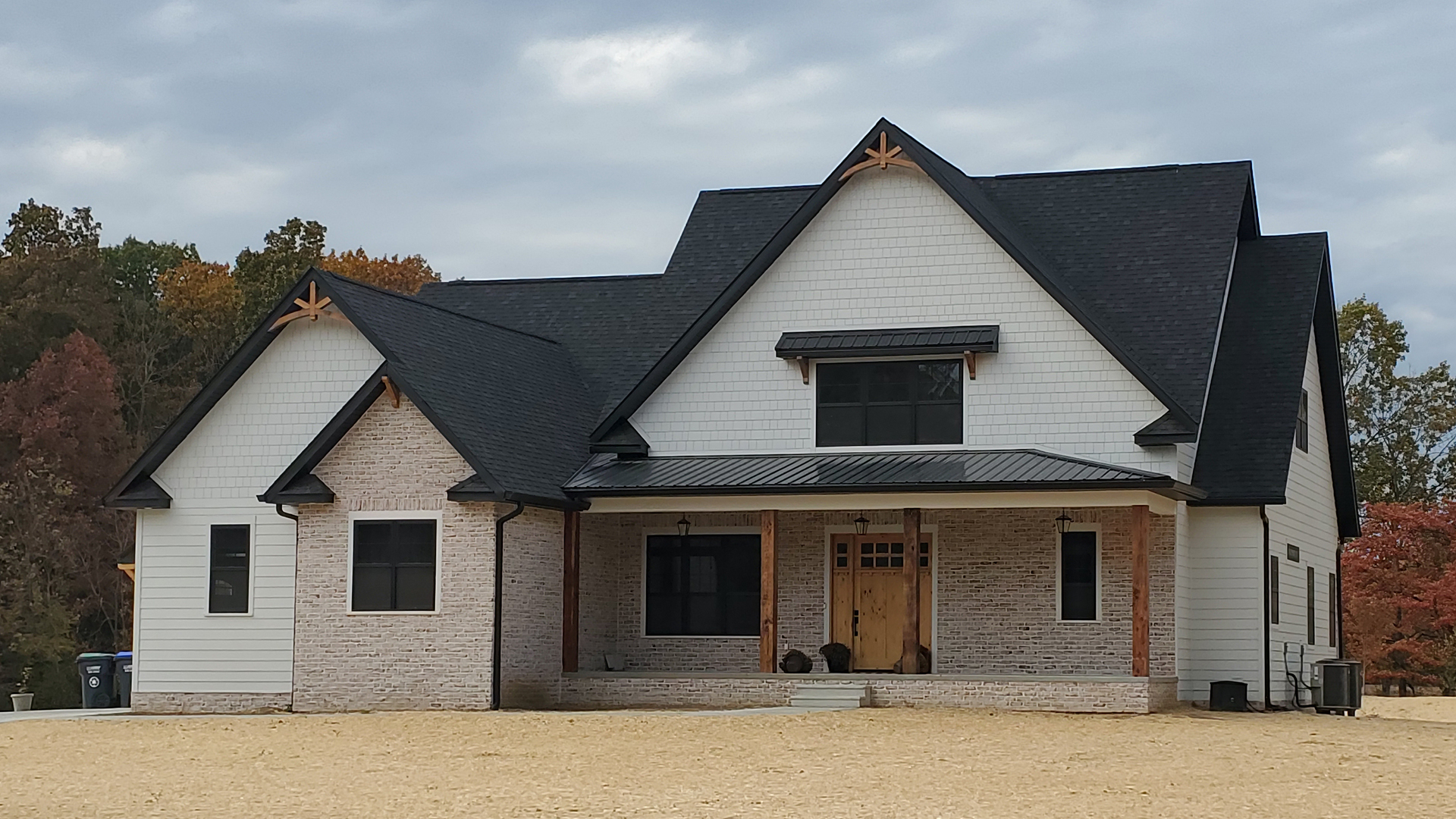 The Smiley house is a beautiful house with a country feel. The house has 3,500 finished square feet over an unfinished, walk-out basement. Features include tall, coffered ceilings, 8ft tall doors and a bonus room above the garage. The large living room has two, 8ft french doors that lead to a screened-in porch. The screened-in porch and living room share a large back to back fireplace. The exterior of the house has beautiful wood accents and white washed red brick on the front.